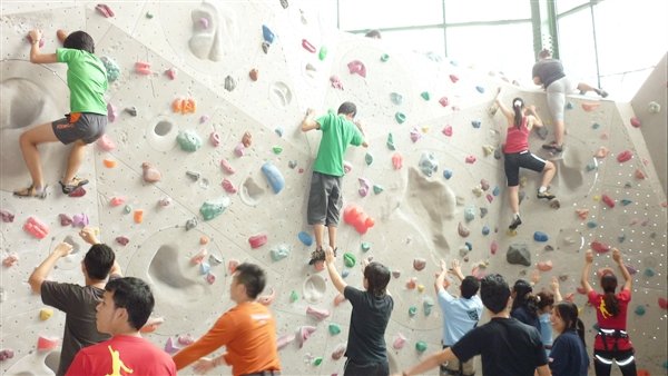 It was one-hour climb where we experienced 3 types of walls with different heights and challenges. Seriously, organizing this climb was really a big challenge to me as I have acrophobia. But I really want to do this, to overcome it! OK. This picture below was the warm up wall we had. It might look easy like that-not very high. But i personally think this was crazy and the worst! Because they didn't have any safety thingy tied up to you and if you fall, you fall! So no matter what you have to hold yourself there until you got to the top.